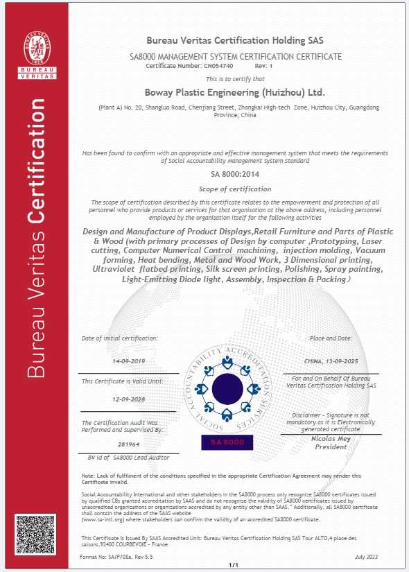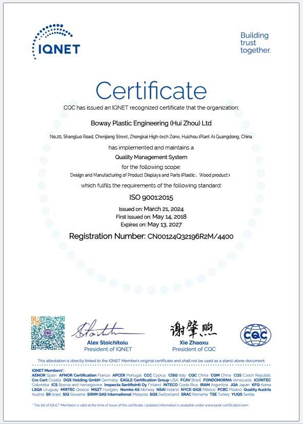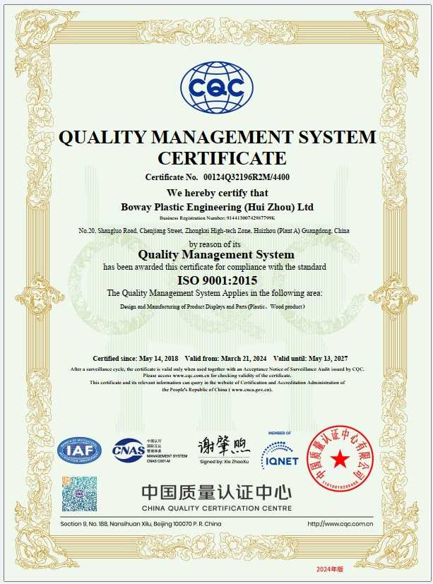 宝威拥有大型制造基地,占地面积超21000平方米。涵盖 UV 和宽幅 印刷、吹塑、注 塑、真空成型、真空电镀、喷漆、亚克力、五金和木材制造以及 LED 照明灯具和标牌组件等,用心为客户打造臻品展柜。